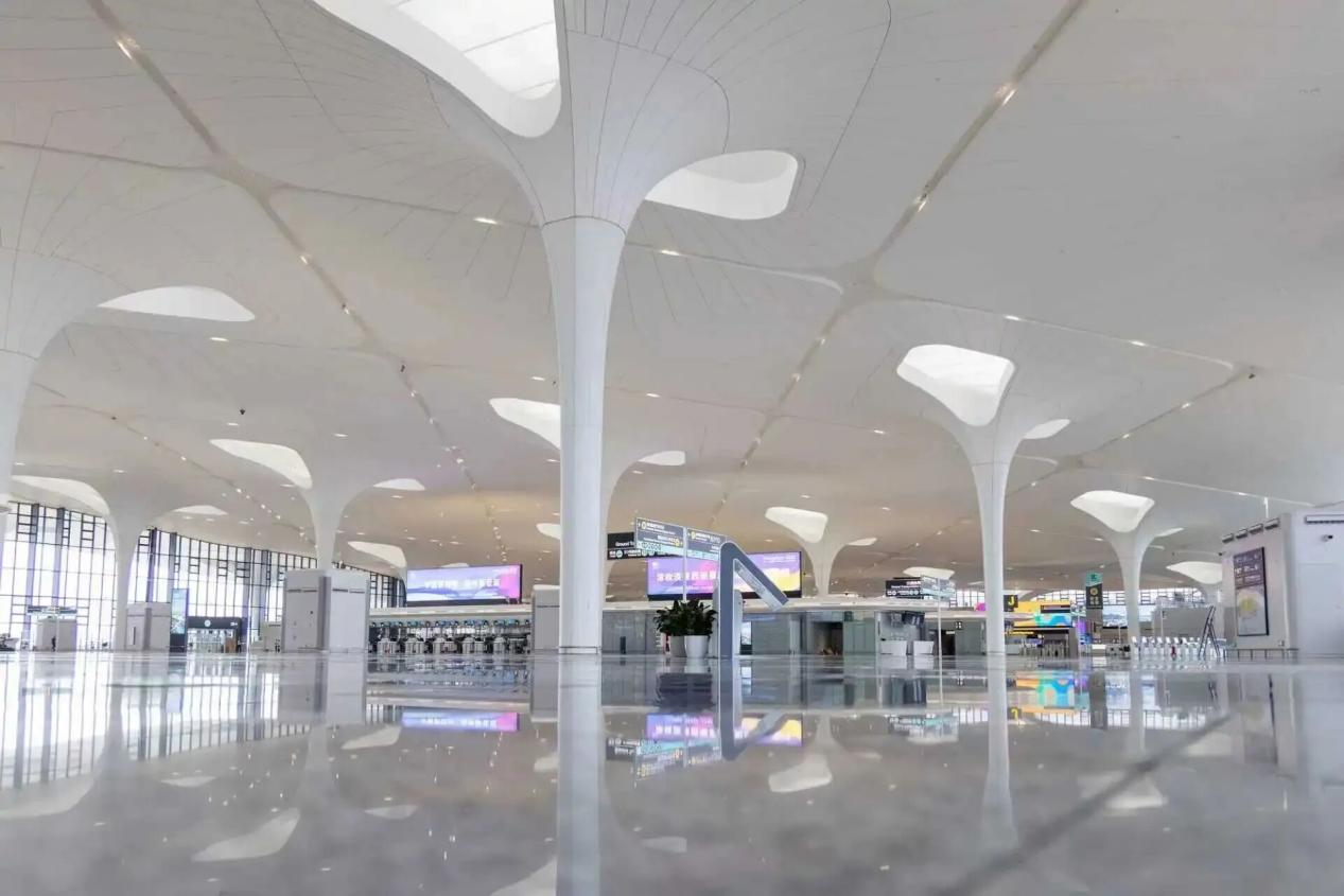 無紙化出行服務讓旅客乘機出行一路“刷臉”,新能源擺渡車安靜地穿梭于機場場內,航站樓屋頂的光伏板在陽光下泛著微光,跑道上采用單發滑入技術的客機正在緩緩停靠,人工智能(...
