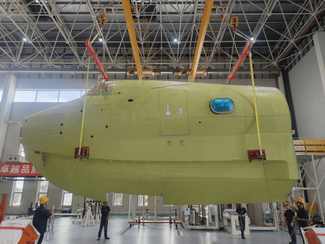 2024年,大型水陸兩棲飛機(jī)AG600批產(chǎn)首架機(jī)的成都造機(jī)頭大部件完成交付。